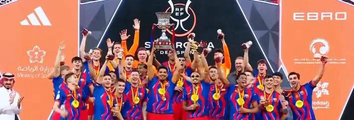 1月12日凌晨,沙特吉达的赛场上迎来了一场震撼人心的西班牙超级杯决赛,巴塞罗那在这场跌宕起伏的国家德比中,以3-2击败宿敌皇家马德里,实现了西超杯两连冠。整场比赛精彩纷呈,共有5粒进球、补时阶段的戏剧性扭转以及红牌冲突,将比赛推向高潮。而这其中,巴西边锋拉菲尼亚的表现尤为抢眼,无疑成为全场最耀眼的MVP,一战封神。