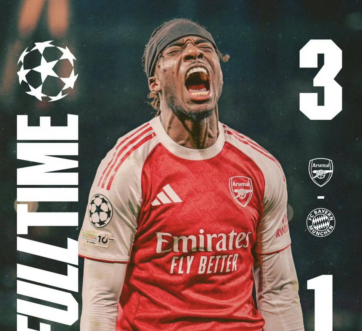 拜仁此战缺少了核心边锋迪亚斯,由于停赛无法出战,这位被利物浦放弃却在拜仁焕发光彩的超级边锋本赛季贡献颇丰——18场比赛打入11球并送出5次助攻,其空缺让球队攻击力大打折扣。比赛开始仅22分钟,阿森纳利用角球战术由萨卡助攻廷贝尔头球破门,先拔头筹。随后拜仁依靠年轻小将卡尔的进球扳平比分,但这是阿森纳本赛季欧冠比赛中的首次失球。下半场,第69分钟,替补出场的卡拉菲奥里传中助攻马杜埃凯完成抢点破门,帮助阿森纳重新取得领先优势。比赛尾声,拜仁门将诺伊尔因出击失误被马丁内利抓住机会推入空门,彻底锁定胜局。拜仁四连胜势头告一段落,而阿森纳则延续了完美战绩,引领了欧洲顶级联赛的风骚。